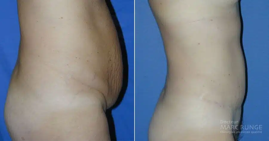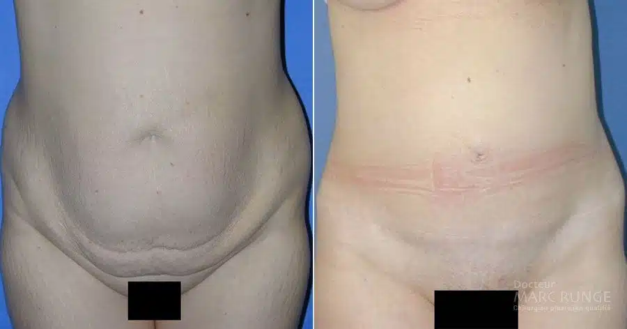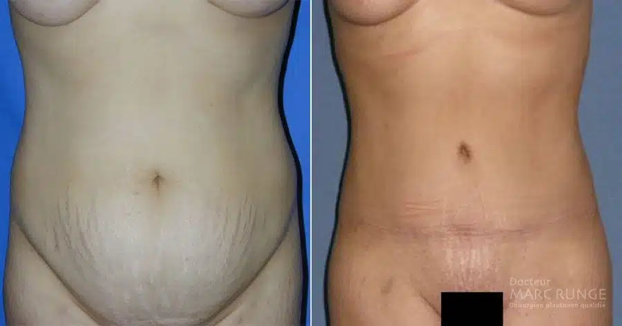 L’abdominoplastie étendue laisse des cicatrices plus ou moins visibles selon l’importance de l’intervention. La cicatrice est localisée sur le bord supérieur des poils pubiens. Le Docteur Runge informera le patient de la longueur de celle-ci avant l’intervention.